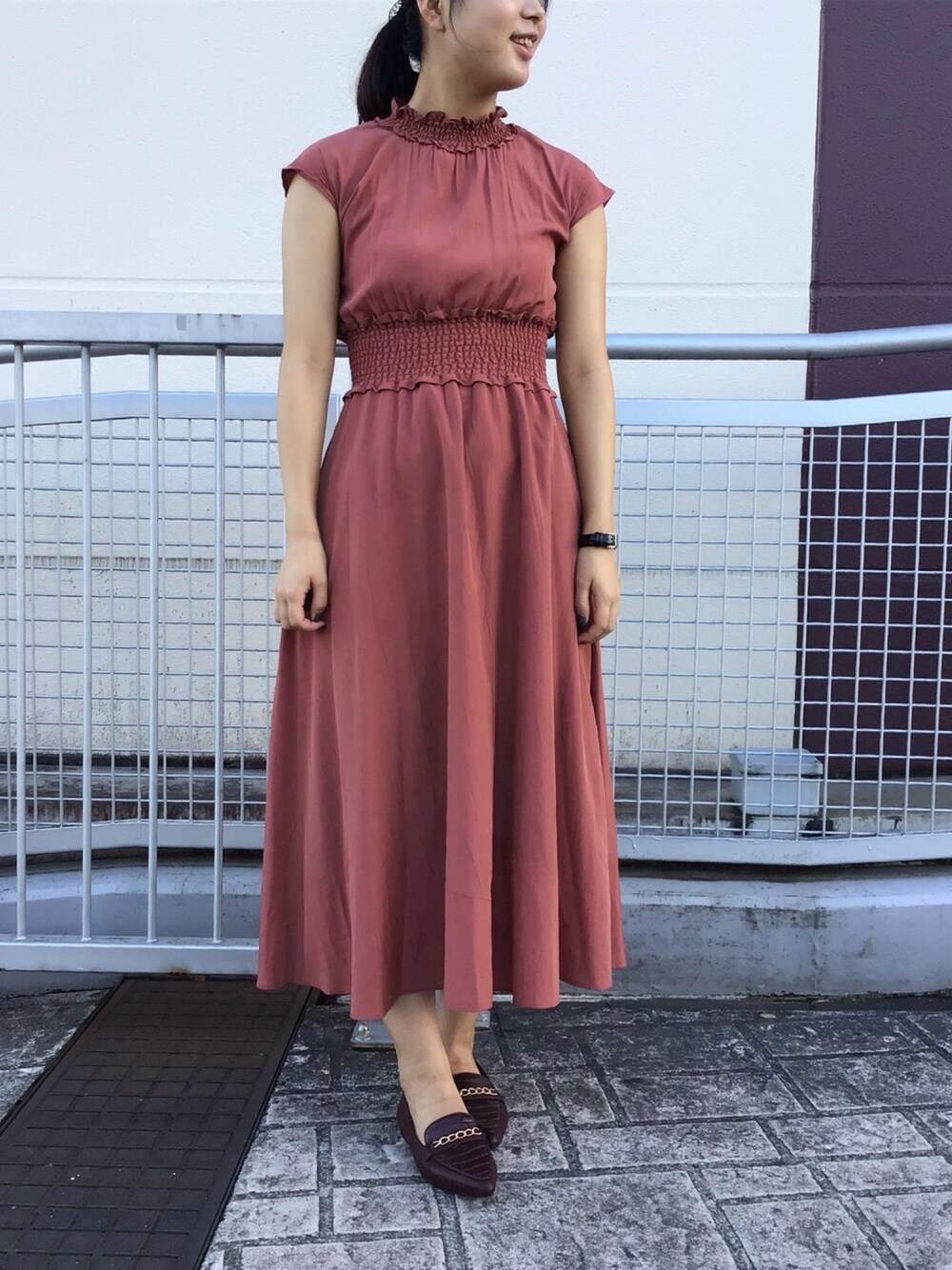 甘いワンピースにゴールドチェーンモチーフで大人っぽさをプラスしました^^ ヒールも1.8cmと履きやすさも抜群です!