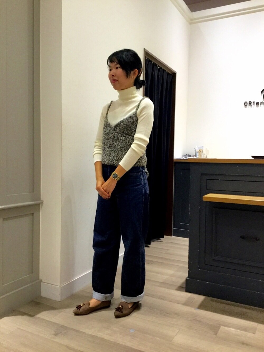 WA ORientalTRaffic レイクタウン店のニット/セーター「エクストラファインメリノリブタートルネックセーター(長袖)」を使ったコーディネート
