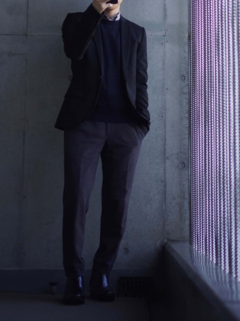 コバヤシ_トシヒコのスラックス「【WEB別注/軽量/3ピース対応】フォルモザリングニットパンツ」を使ったコーディネート