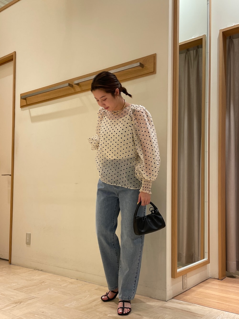 sachi(FREDY & GLOSTER ららぽーと立川立飛店)のシャツ/ブラウス「[新色追加]ドットシアー袖ボリュームブラウス(インナー付き)」を使ったコーディネート
