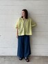 【コットンボリュームブラウス】 身幅と腕周りが広く体型カバー◎!なブラウスです。首元のギャザーとリボンで可愛さも取り入れた肌触り抜群シャツです。 【デニム/リネン混イージーワイドパンツ】 リネンパンツなので履き心地がとても良いパンツです。カラー展開も豊富でどのカラーもおすすめです。