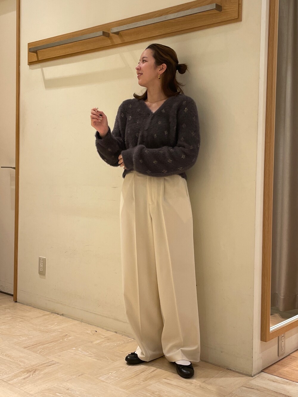 sachi(FREDY & GLOSTER ららぽーと立川立飛店)のカーディガン/ボレロ「ラメJQシャギークロップドカーディガン」を使ったコーディネート