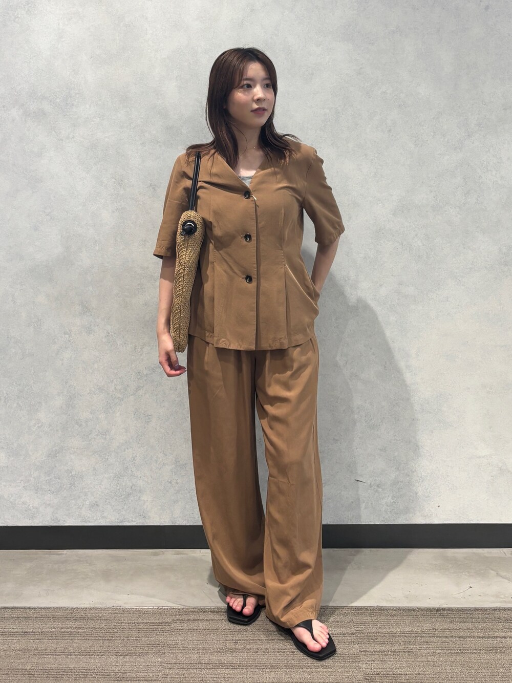 ◇トップス 夏でも涼しく着れるレーヨン麻半袖ジャケット レーヨン麻素材で軽く、通気性もあり、暑い時期もお使いいただけます◎ ウエストが絞られていてスタイルアップも叶えてくれます✨ ノーカラーで首元はスッキリ、身体のラインも拾いすぎない程よいゆとりのあるシルエットです ◇ボトムス 同素材のジャケットとのセットアップもおすすめなイージーパンツ オールゴム仕様で履きやすさは勿論、軽くて柔らかい素材で夏でも着心地の良い一本です◎ すらりとしたシルエットで脚長効果も叶えてくれます