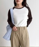 sachi(FREDY & GLOSTER ららぽーと立川立飛店)のショルダーバッグ「ボーダープリントスクエアトートバッグ」を使ったコーディネート