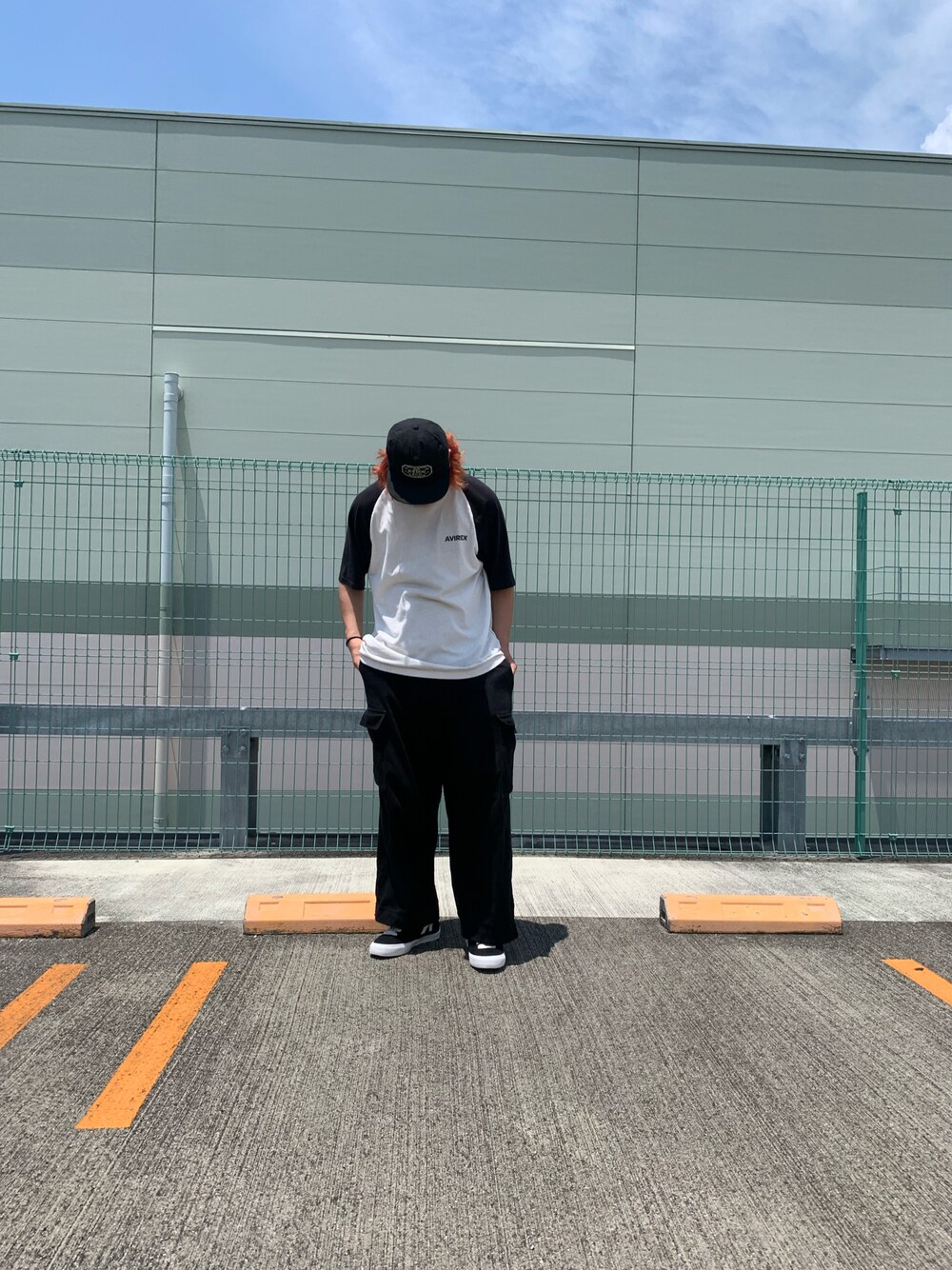 長舩 悠(AVIREX EXPOCITY ららぽーとEXPOCITY店)のTシャツ/カットソー「ウェストコースト メニューデザイン 半袖 ラグラン Tシャツ / WESTCOAST MENU DESIGN RAGLAN T-SHIRT / アヴィレックス / AVIREXWEST COAST SS BB TEE MENU」を使ったコーディネート