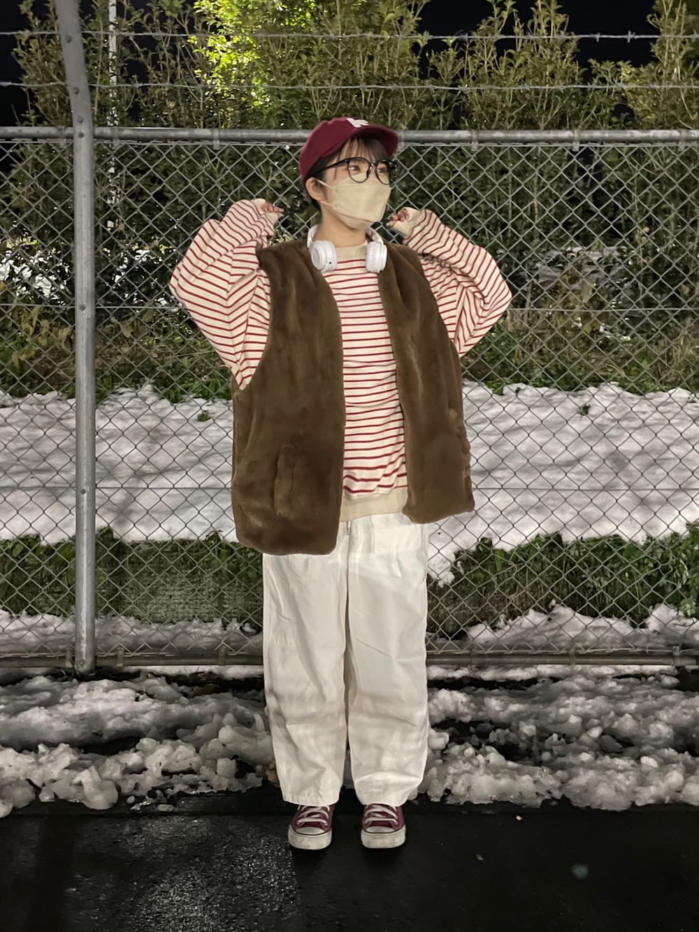 おさるのベスト「【retock's】フェイクファー オーバージップベスト」を使ったコーディネート