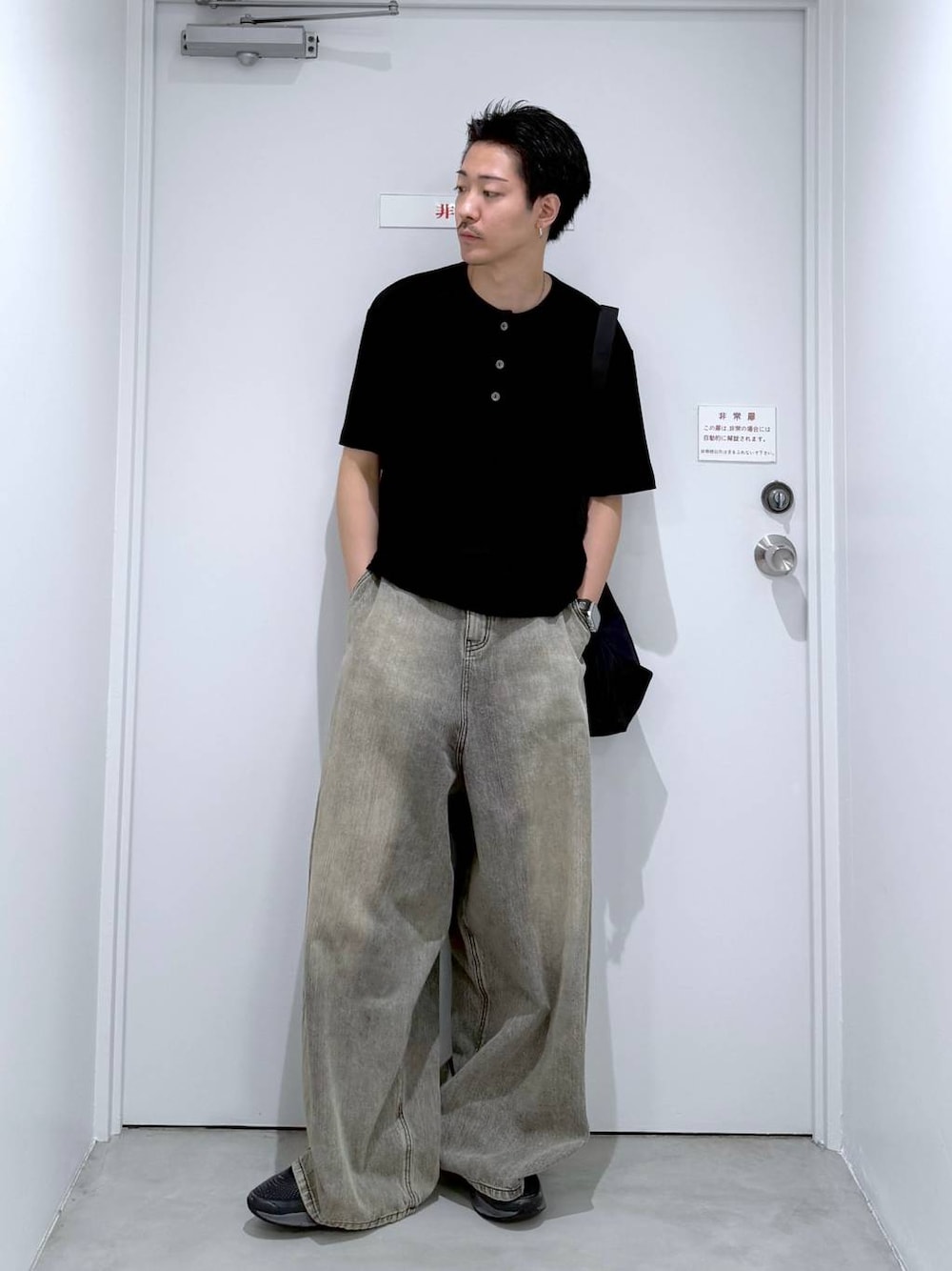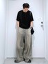 👕おすすめポイント  ̄ ̄ ̄ ̄ ̄ ̄ ̄ ̄ ̄ ̄ ̄ ̄ ̄ ̄ ̄ ̄ ̄ ヘンリーネックT 伸縮性に優れ、着心地がとても良いTシャツ トレンドのヘンリーネックで、ボタンも金属の装飾が施されており高級感もある 比較的コンパクトなシルエットなので、オーバーサイズに飽きた方に是非お勧めしたい ボトムス 極端にオーバーシルエットなデニムパンツ 夏の主役にもってこいな存在感のあるデザイン 身幅に比べてウエストなどその他の部分は基本的なデニムパンツのサイズ感と差がほとんどないのが嬉しい。