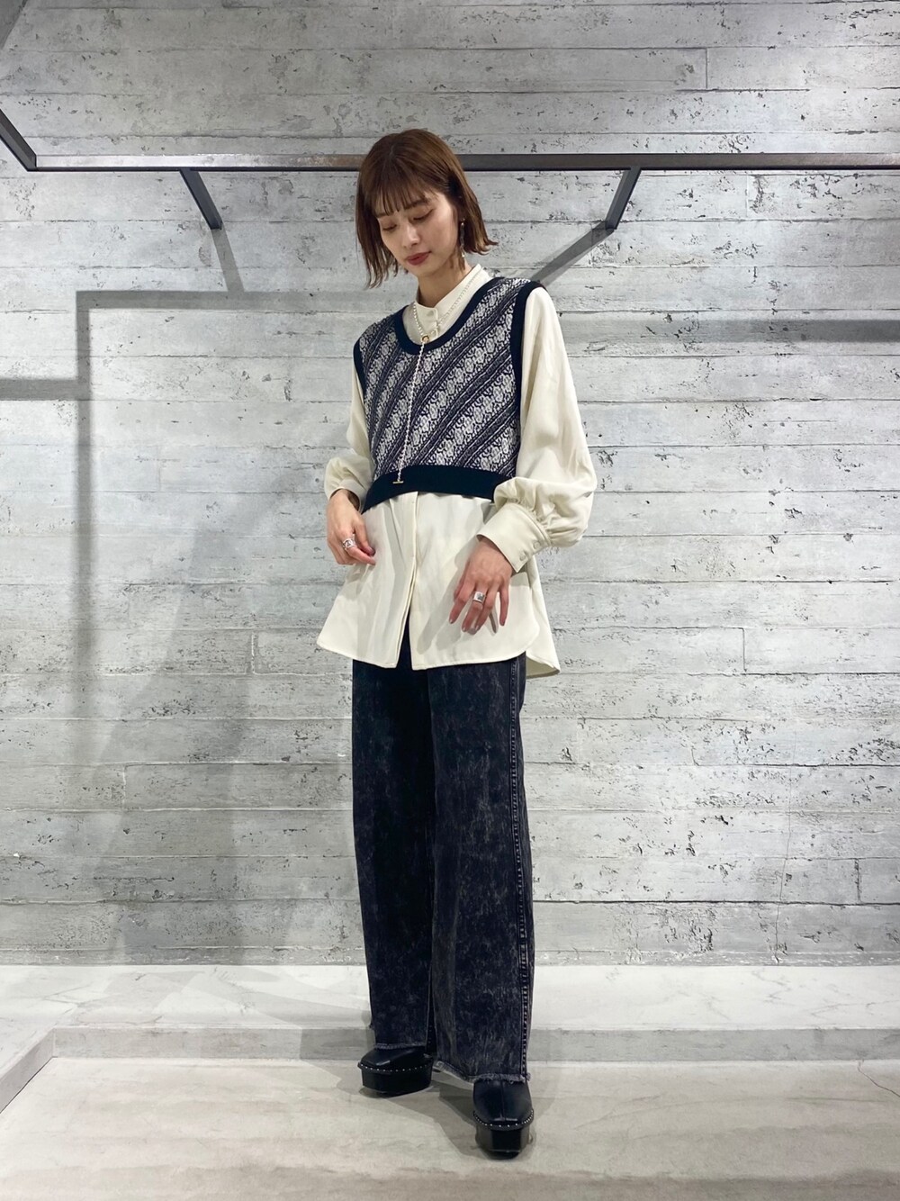 お気に入りのモノトーンスタイル🖤 ショート丈のベストは長めのシャツと レイヤードするのがおすすめです☺︎