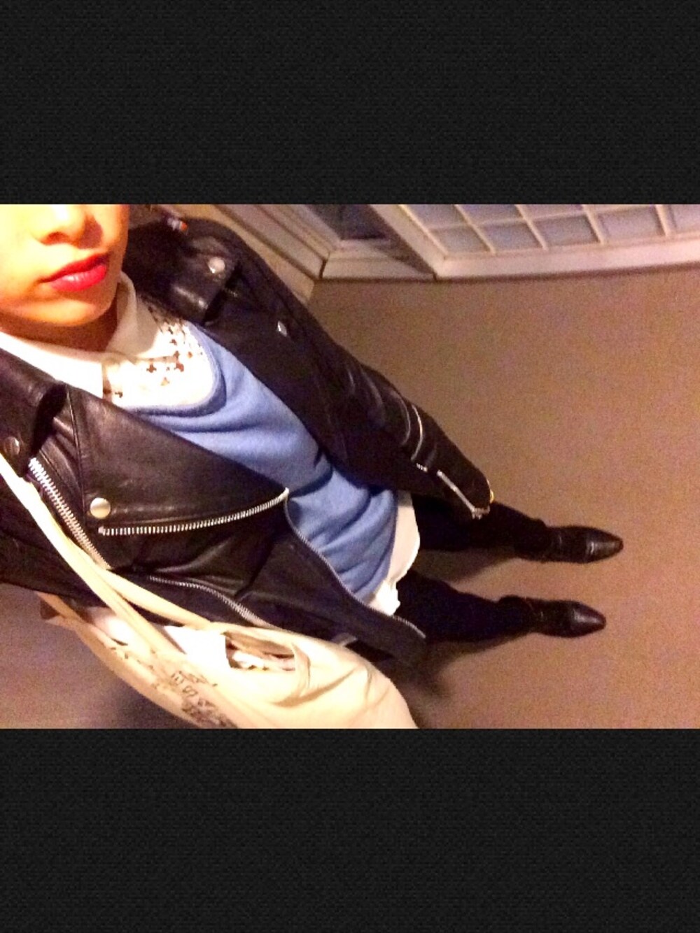 尾崎紗代子のライダースジャケット「レザーライダース」を使ったコーディネート