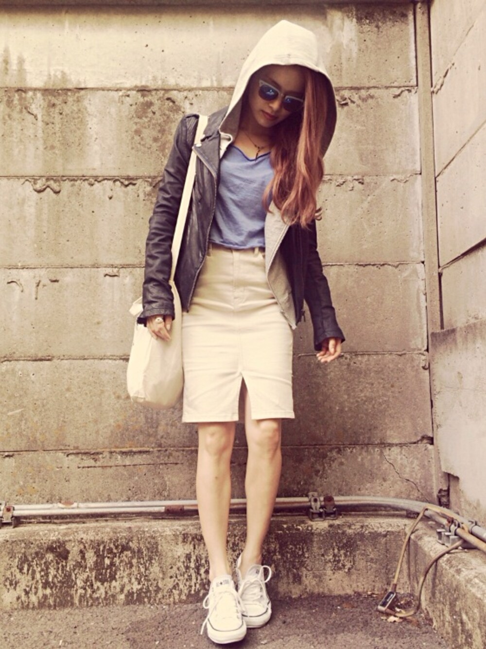 尾崎紗代子のマウンテンパーカー「コラボパーカー Don't think!のメッセージと脳みそのデザインが右脳の所に入ってます。」を使ったコーディネート