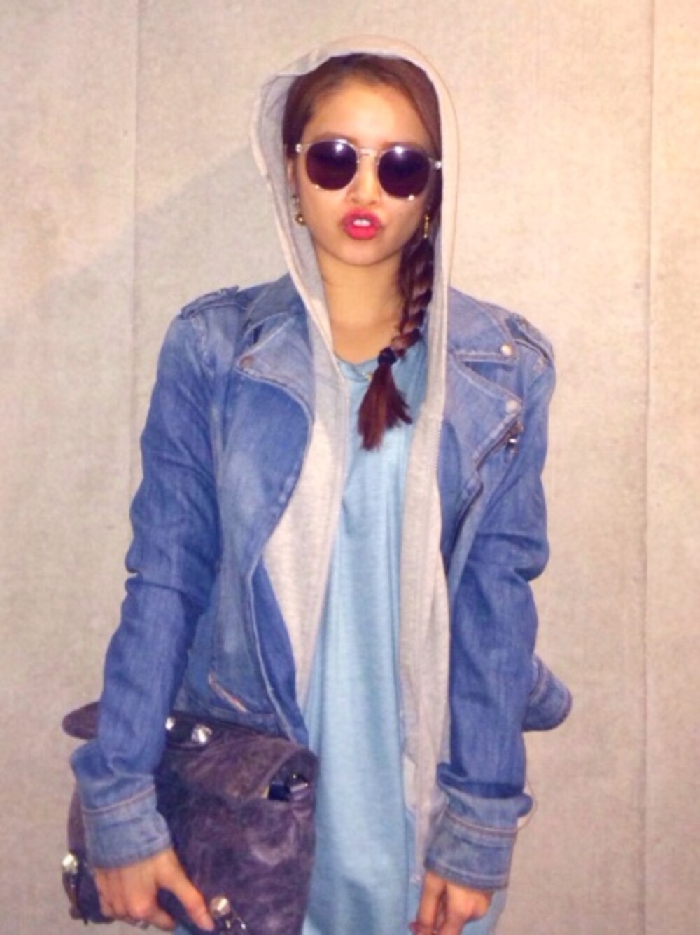 尾崎紗代子のサングラス「クリアサングラス」を使ったコーディネート