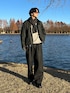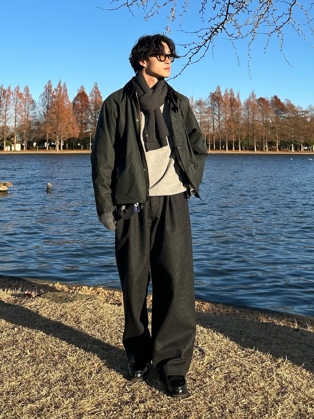 スラックスと小物はチャコールで統一して、大人らしい色使いを意識しました👍