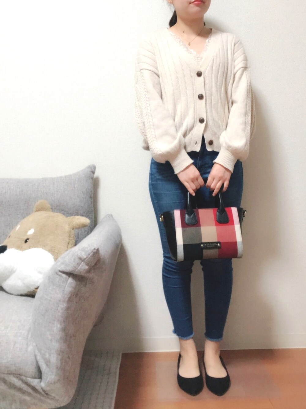 カーディガンは 秋なりたてはインナーを半袖 冬近づいたらインナーを長袖 にするだけで 対応できちゃうから大好き💕 着まわししまくってます。