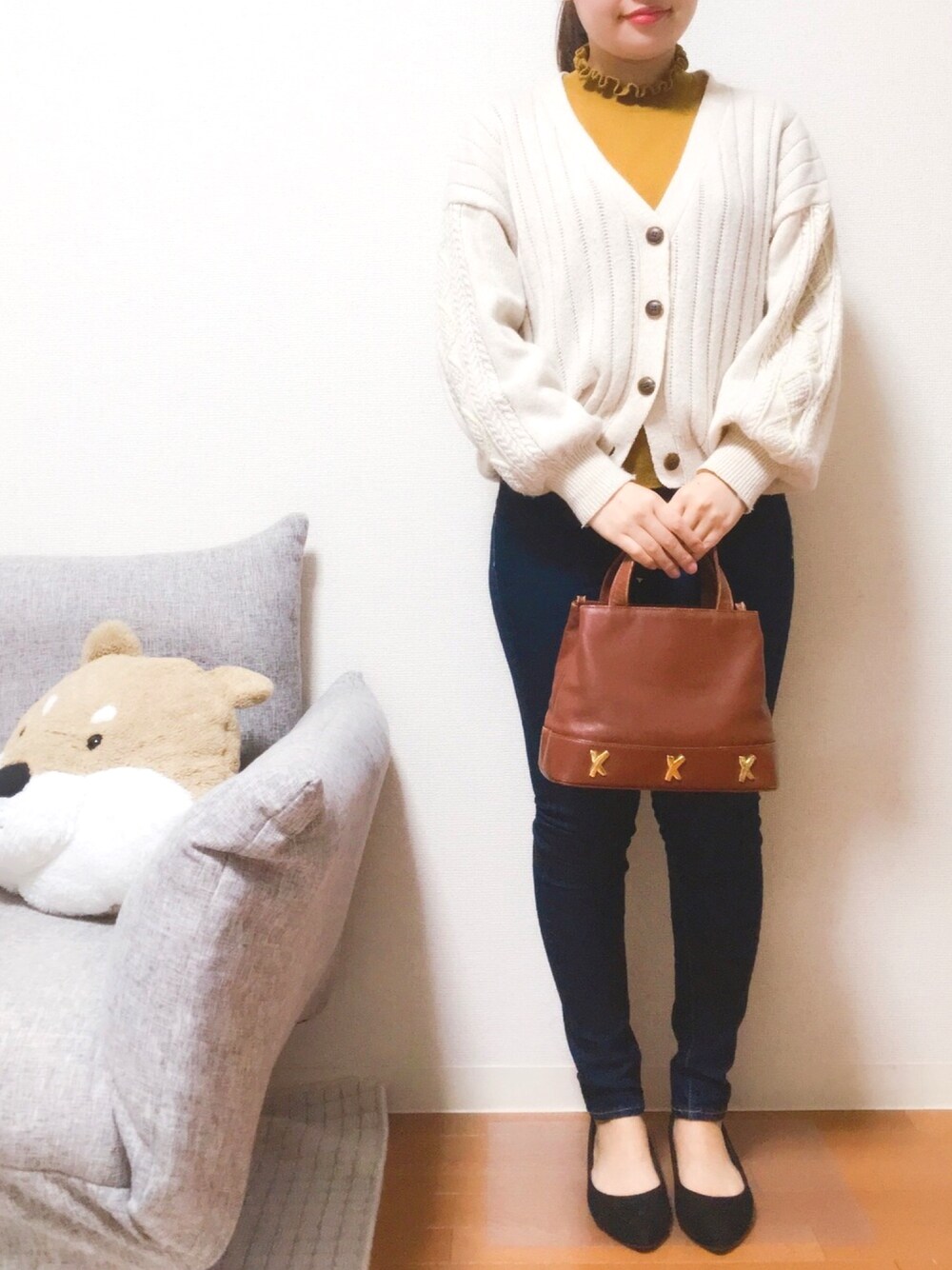 non*のカーディガン/ボレロ「ステッチ入りケーブルカーディガン」を使ったコーディネート