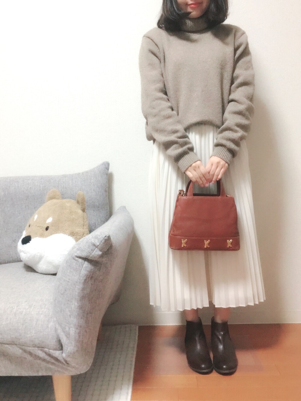 あえてメンズのニットを購入して ゆったりしたシルエットにしました🙈💕 スカートの前側にちょこっとインして スタイルアップです😍✨
