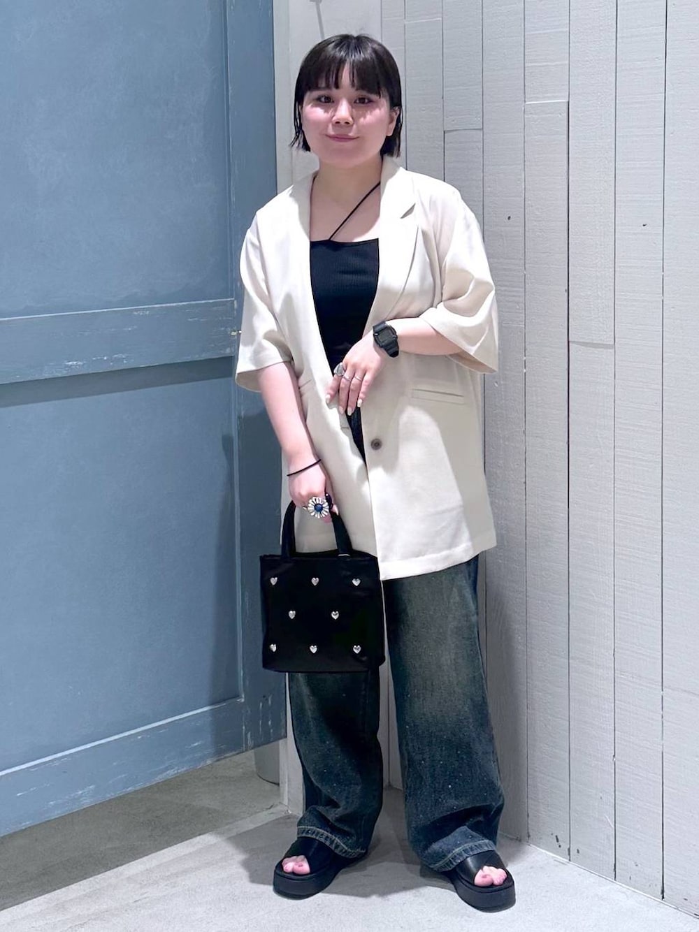しばちゃん(LOWRYS FARM イオンモール鈴鹿)のデニムパンツ「ビジューデニムパンツ 115247」を使ったコーディネート