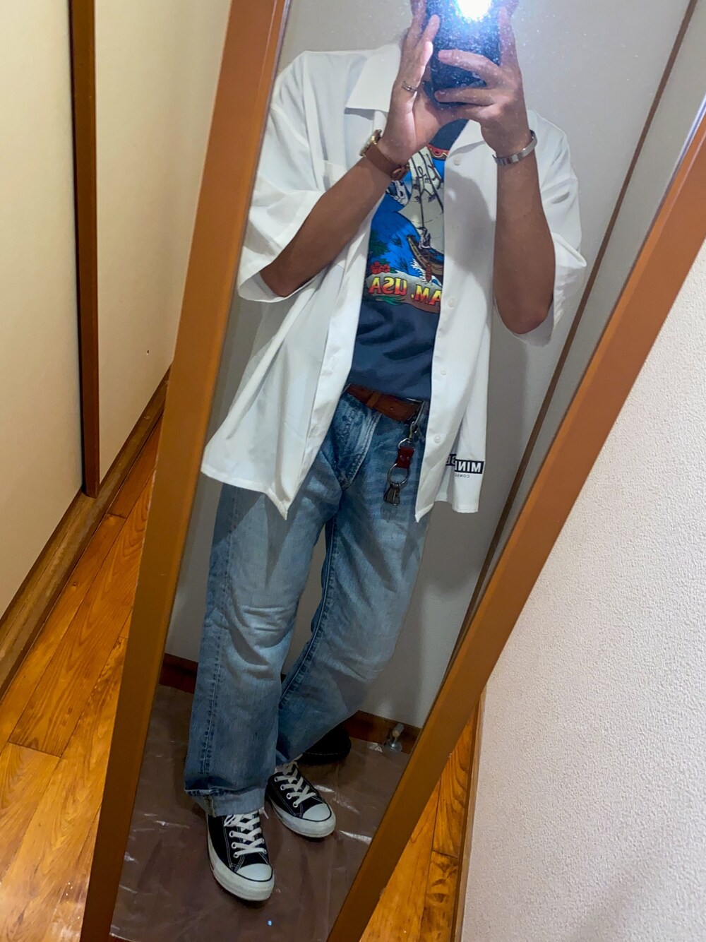ご覧いただきありがとうございます! 今回は僕の友達のリクエストを頂いたコーデチャレンジしましたー! 因みに、白シャツと淡いデニムだけリクエスト頂きました!