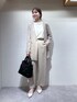 大人気ジャージシリーズのジャケット、ブラウス、ワイドパンツを合わせたきちんと感のあるオフィススタイルです。 素材感はとてもさらりとしていてシワになりにくいので出張や旅行でもおすすめ。 ジャケットも全てお洗濯できるのでこれから暑くなる季節に嬉しいポイント! さらに落ち感のある生地で体のラインを捨わないのにすっきり華奢見え してくれるので着痩せ効果も◎