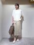 人気のジャージドルマンブラウスに楽ちんな履き心地抜群のタイトスカートを合わせたオフィススタイルです。 ブラウスは、肘の隠れる長さなので二の腕をすっきりカバーしてくれます。 前だけ少しインするとすっきり見えておすすめです! スカートは、履き心地がとにかく楽ちんなのにすっきり細見えするタイトスカートです。 腰張さんや普段タイトスカート履けないっていう方には1サイズでおすすめです。 華奢な方は0サイズですっきり履いていただけます。 ちなみに着用しているのは、0サイズです。