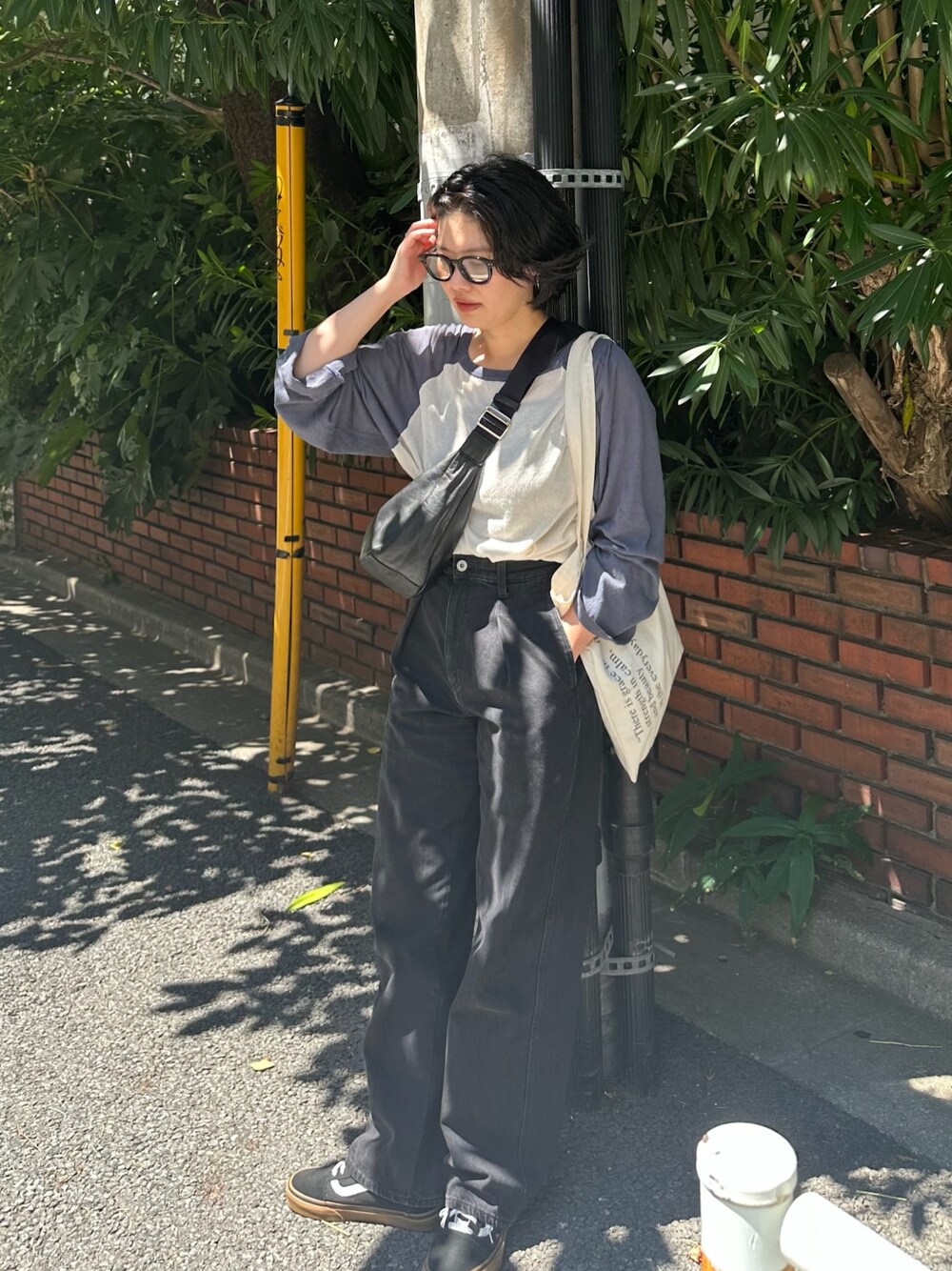 ブラック系のショルダーバッグを着用したレディースの夏コーディネートの1枚目の写真