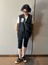 ブラック系のショルダーバッグを着用したレディースの夏コーディネートの2枚目の写真