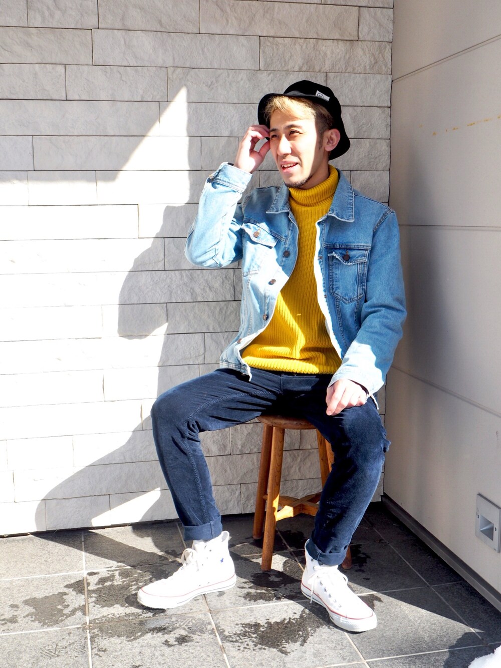プチプラコーデ。 イエローのタートルネックをどう着るか。と悩んだ末のこれです。 結構難しいです。