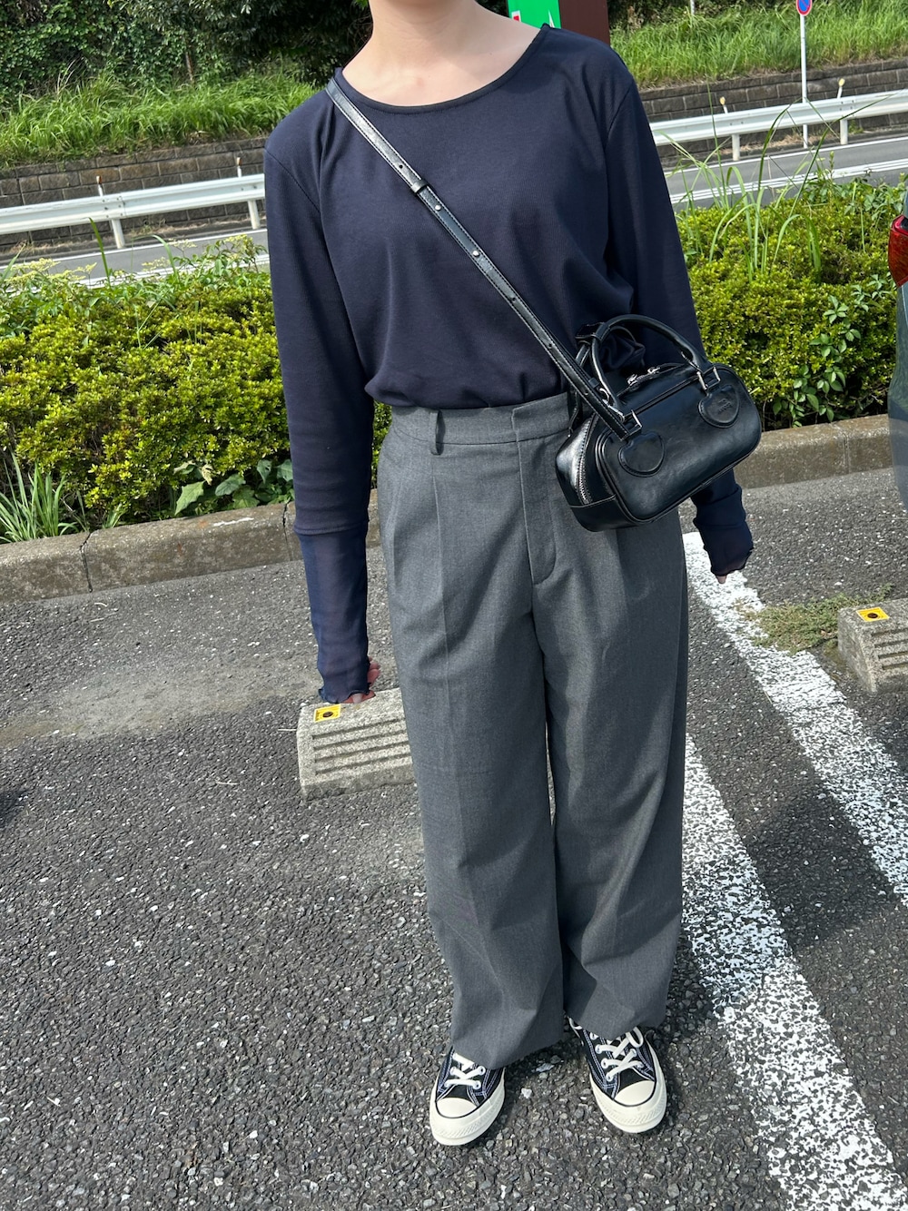 長袖!!! シンプルだけど、袖がシアー素材の切り替えだし首元あいてていつもと違う感じで良い〜 靴は半年前くらいに友達に買ってきてもらったCT70