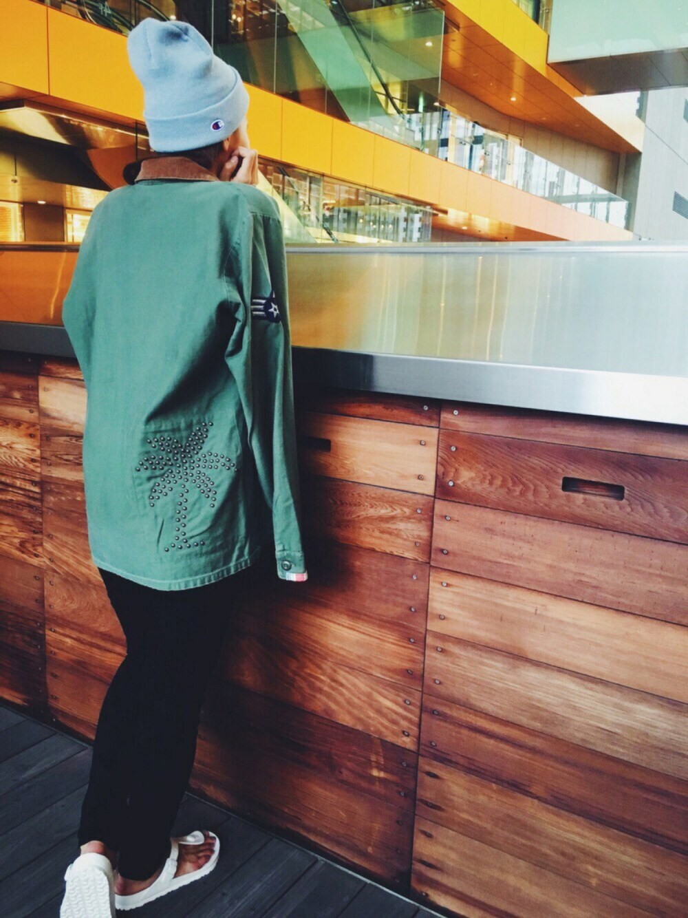 𓇼 昨日アップしましたミリタリージャケットコーデの続きです☀️ . バックスタイルがとても可愛いんです😍 . ヤシの木〜🌴🌴🌴 . 秋になっても海の香りがどこかするitemなのです〜!!!