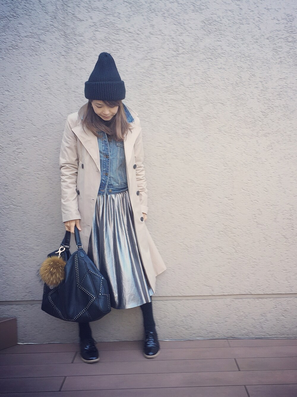 ご覧頂きありがとうございます😊 最近お気に入りの デニジャケ×トレンチ に メタリック スカート で。。。 本当は靴下×#おじ靴 にしたかったけど、 おケツが寒すぎてムリでした😂💔。