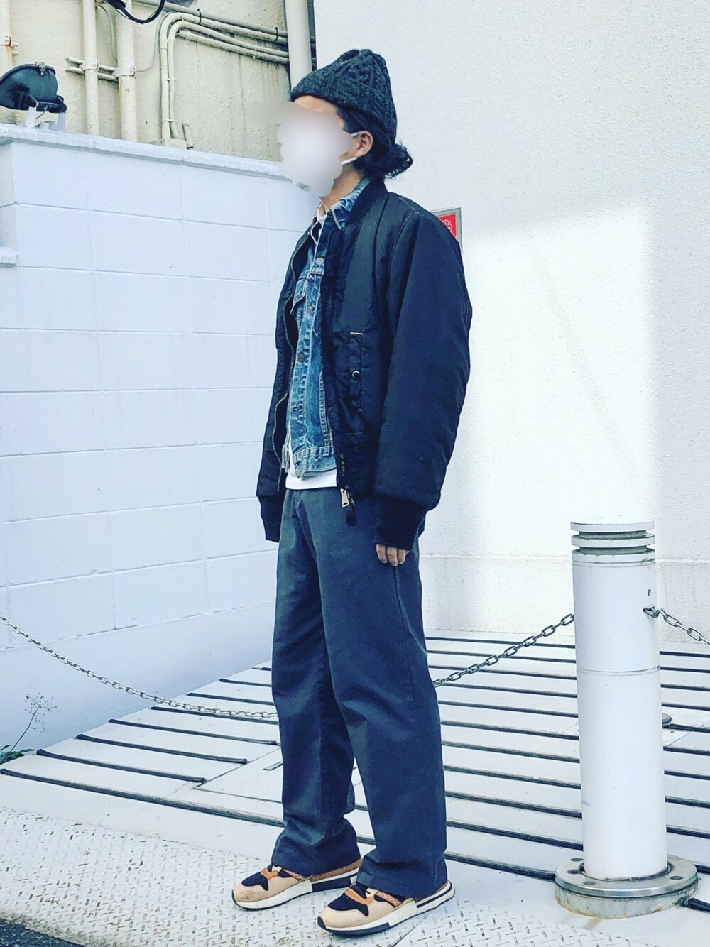 デニムを合わせると一気にアメカジになりますね。MA-1はいろんな着方ができておもしろい✨
