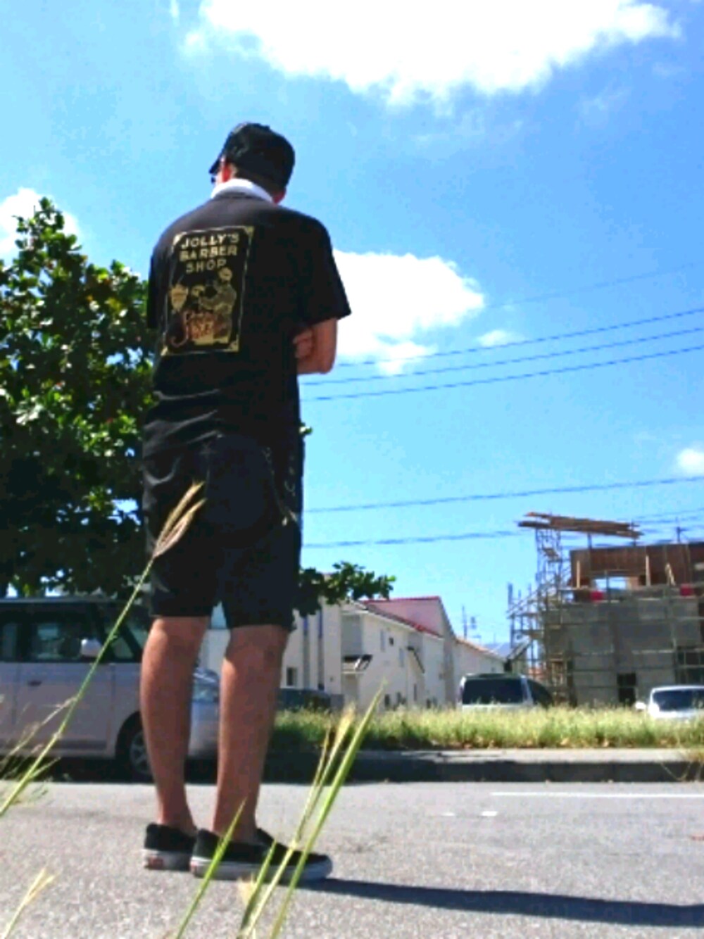 関西のbarbershopのTシャツ🔥 首のタオルは運動会style⚡❕ はー疲れた💀💀💦