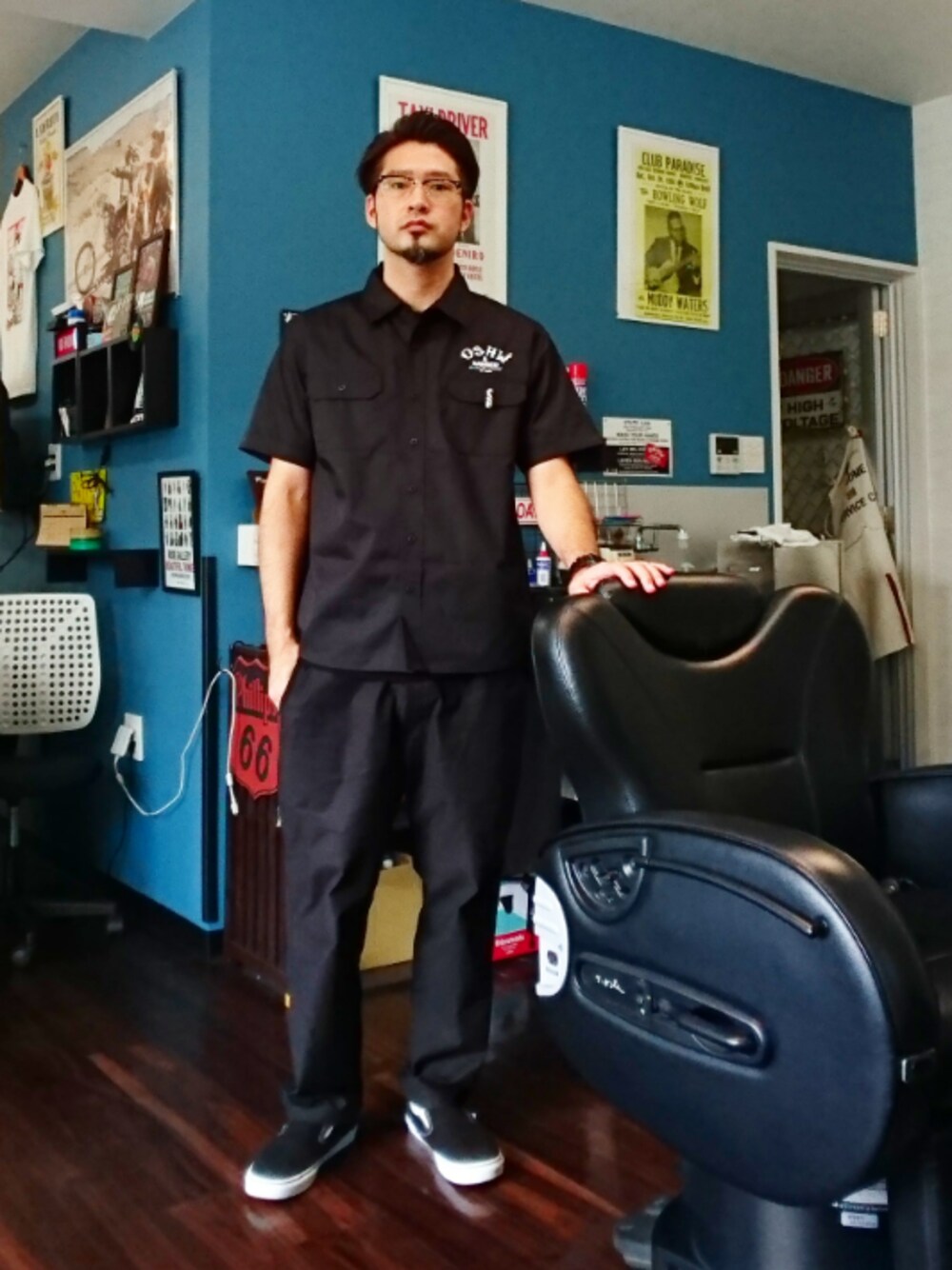 店のユニフォームで workshirt作りました💈⚡❗ サインポールのピンバッジで custom💥胸の刺繍の色を変えて もう一枚作る予定✨ めちゃお気に入りです🎵