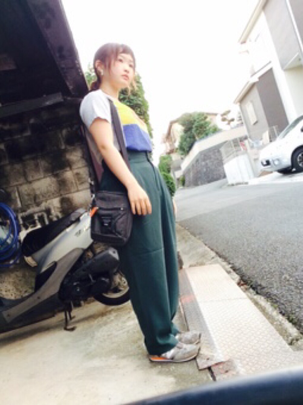 KBFのキレイめなワイドタックパンツをスニーカーとTシャツで着崩すっていう日。YUKIツアーTシャツでUVERworldのライブ行ったね。ちょっと間違ってるよね。笑(先月)