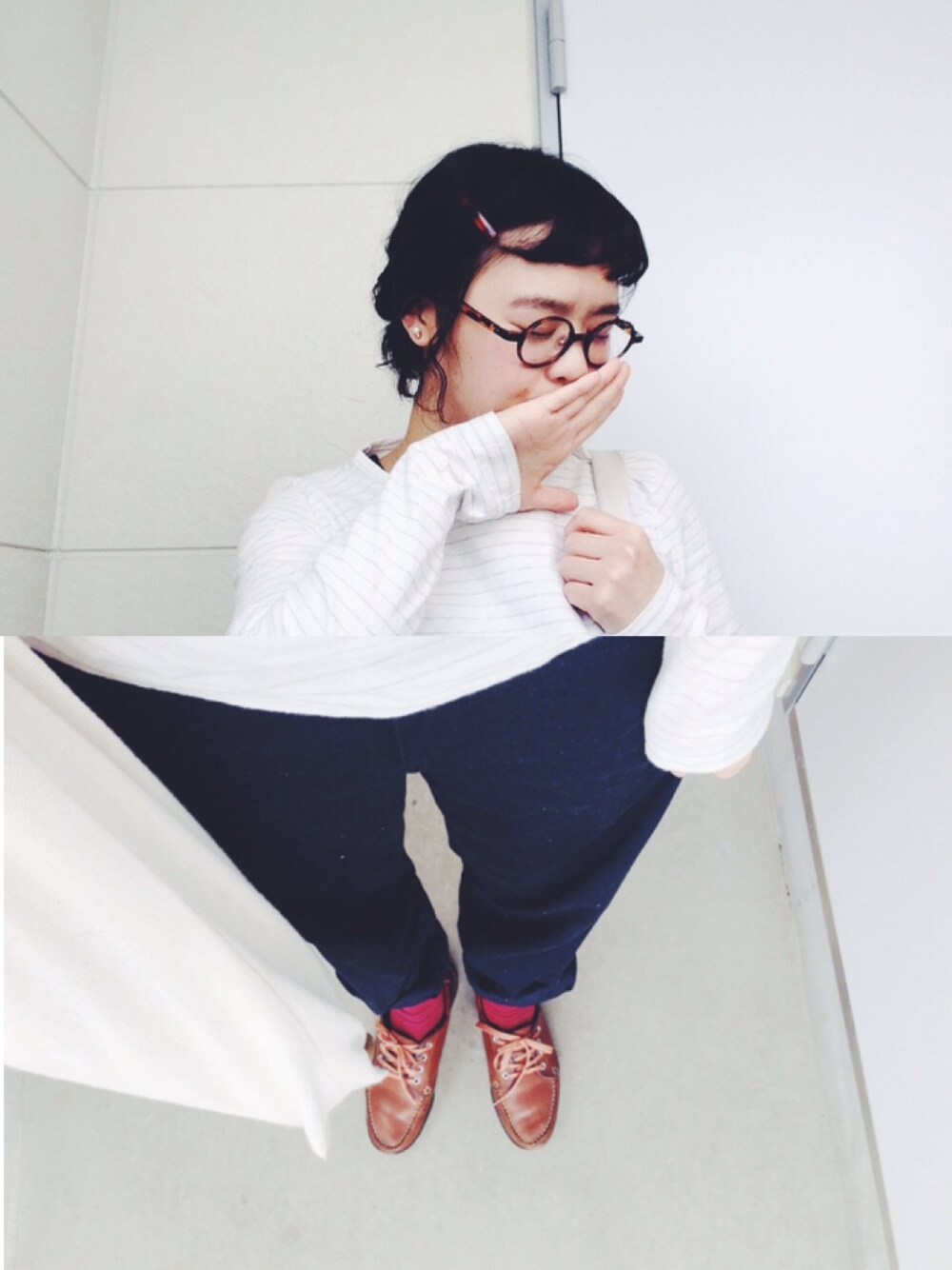 muji コーデ この前古着屋さんで購入した レザーシューズ これをはけばとてもhappy‥*。 前髪パッツリしました!