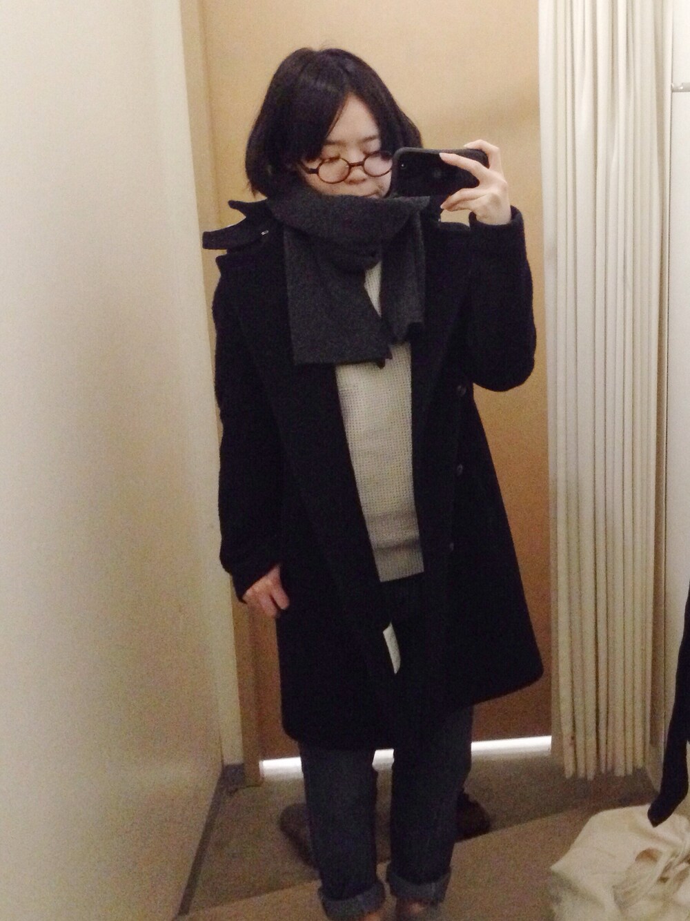 0128 mujiの試着室にて(笑) 新しいデニムに迷ってます。