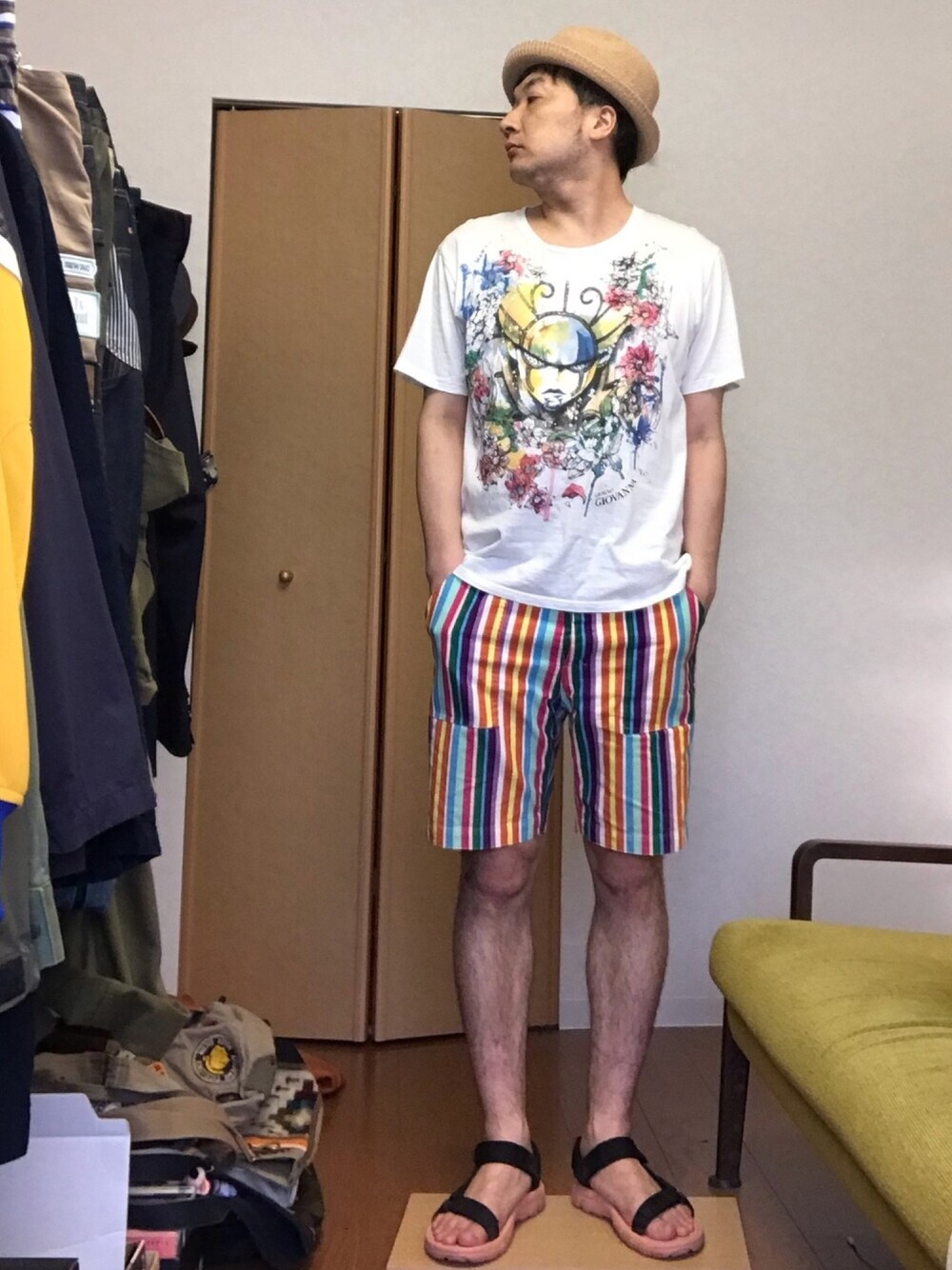 近所に、BEAMS JAPANができたので、見に行ったら、店小さ!ガッカリして帰ったとさ。 ちなみに、Tシャツは、jojoのゴールドエクスペリエンスです。