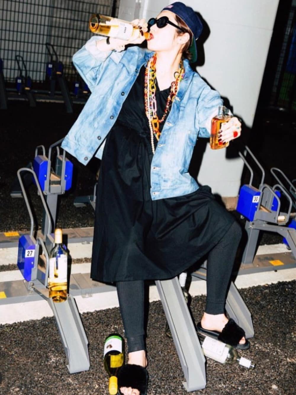 シルバー系のスカートを着用したメンズの冬コーディネートの1枚目の写真