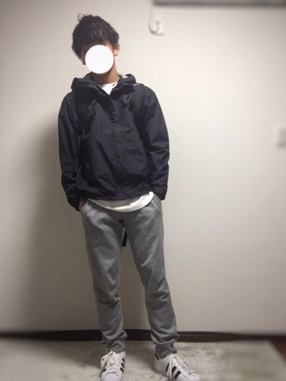 髪型汚いのすみません😓 全身ノースフェイスコーデ😎💫 ちょーゆったりした感じです👻 定番だけどノースフェイスのスポーツウェア? ちょーカッコいい😘😘 中に何着てても隠せれるから バイト用 運動用 とかに最適