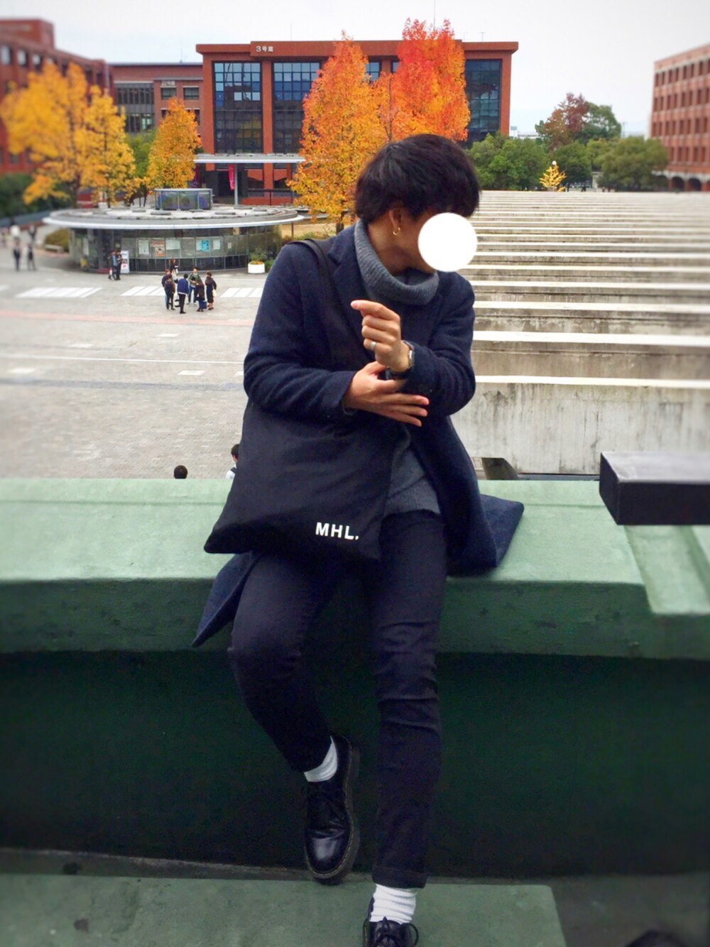 定番コーディネート👻 HAREの尾州チェスターコート買いました😉 めっちゃくちゃ暖かくてびっくりするほど軽い👍 色はネイビーのサイズSです😌