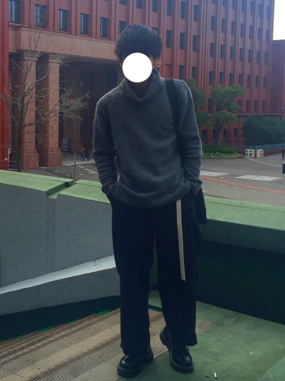 モノトーンコーデ😎 ちょっとポケットに手突っ込んで分かりづらいけど、ワイドパンツ履いてAラインシルエットを意識😎