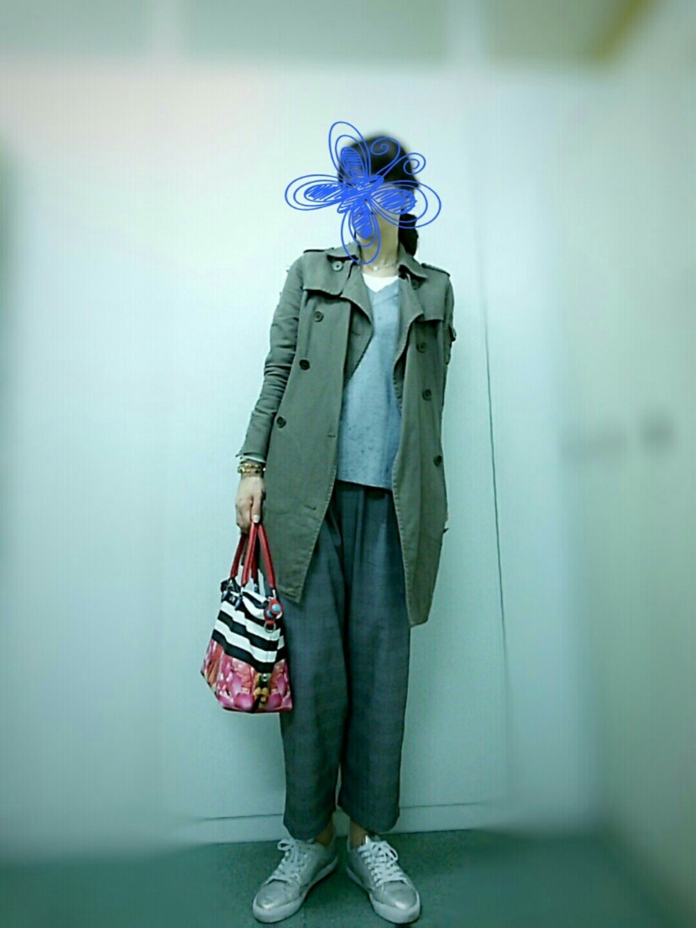 口内炎が3つ…😢 このところの暴飲暴食の成果でしょーか?! 今日はグレーのワントーン&全身GU +久々にカーキのミニタリートレンチを 流行のロングではありませんが💧 このニット、横幅ありすぎなせーか?! アウター着ると前がだぼ~んとして 何故だかお腹ぽっこりに見えるのです そこがちょっと嫌だったりー😣