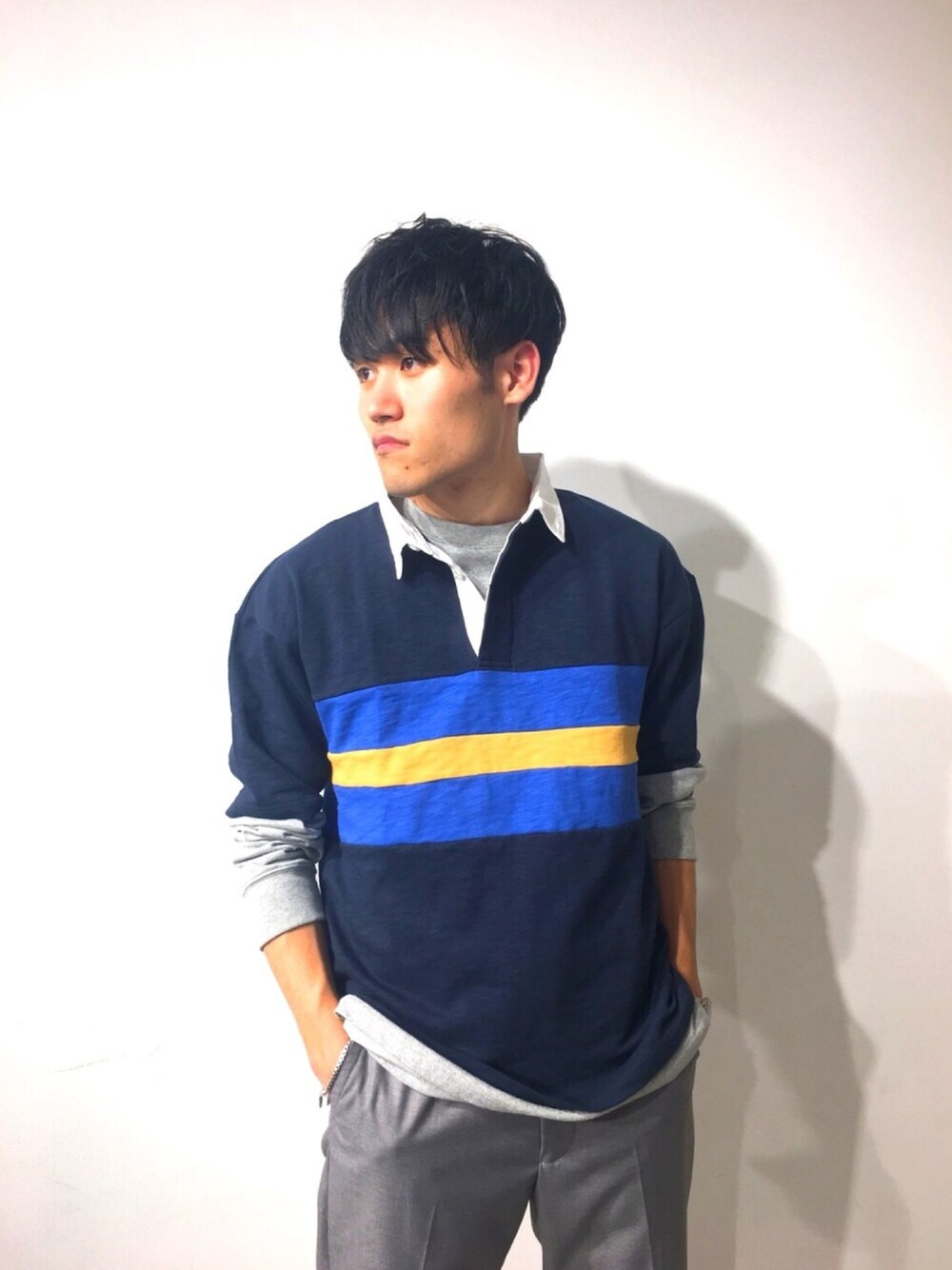 ラガーシャツを着てみました。 シンプルになりがちなこれからの時期に重宝しそうですね。 今回は中にロングTシャツを着てみました。 着こなしの幅が広いのも魅力的です。