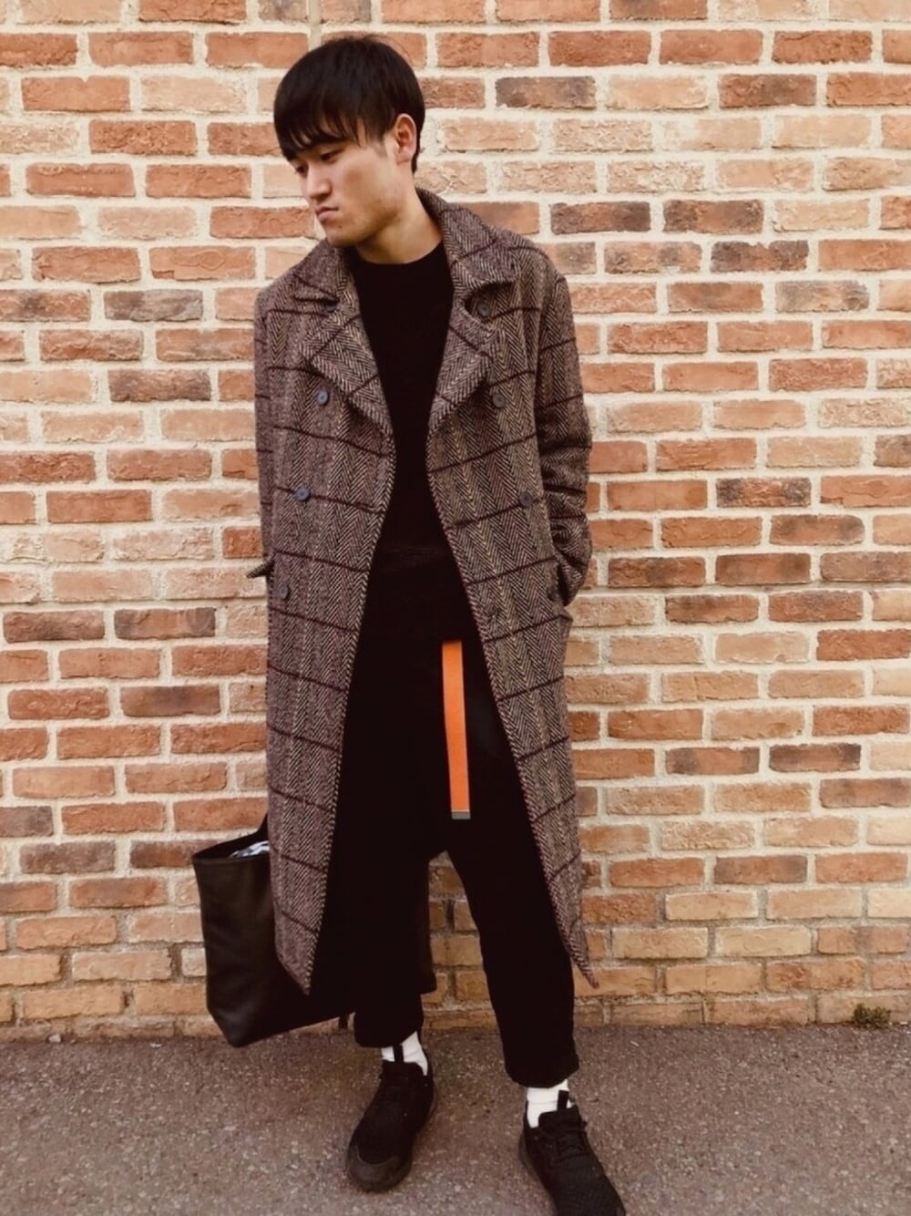shunのチェスターコート「CASPER JOHN AIVER ラインチェックチェスターコート」を使ったコーディネート