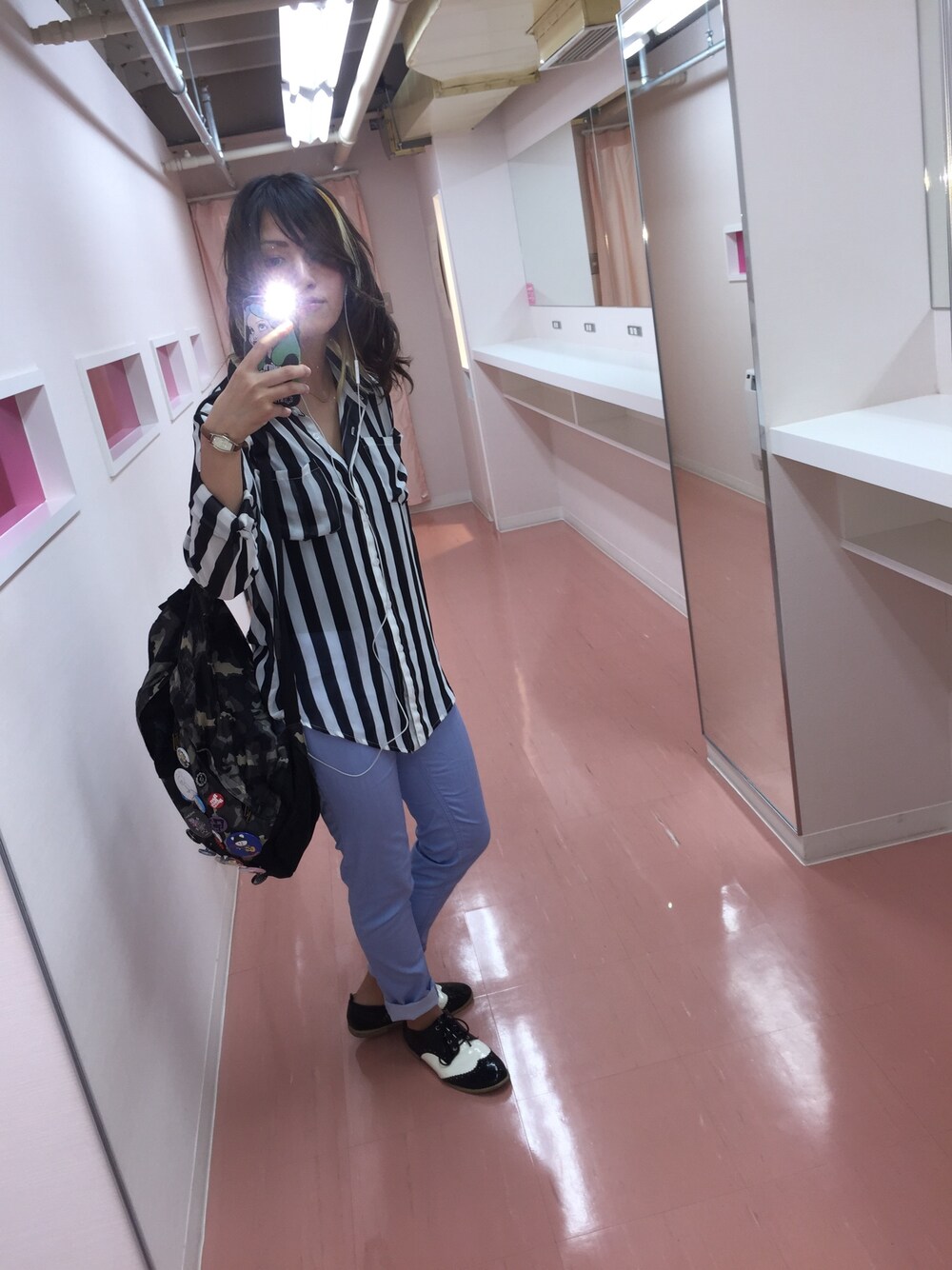 リュックにはたくさんの缶バッチと猪狩さんのサインが/////