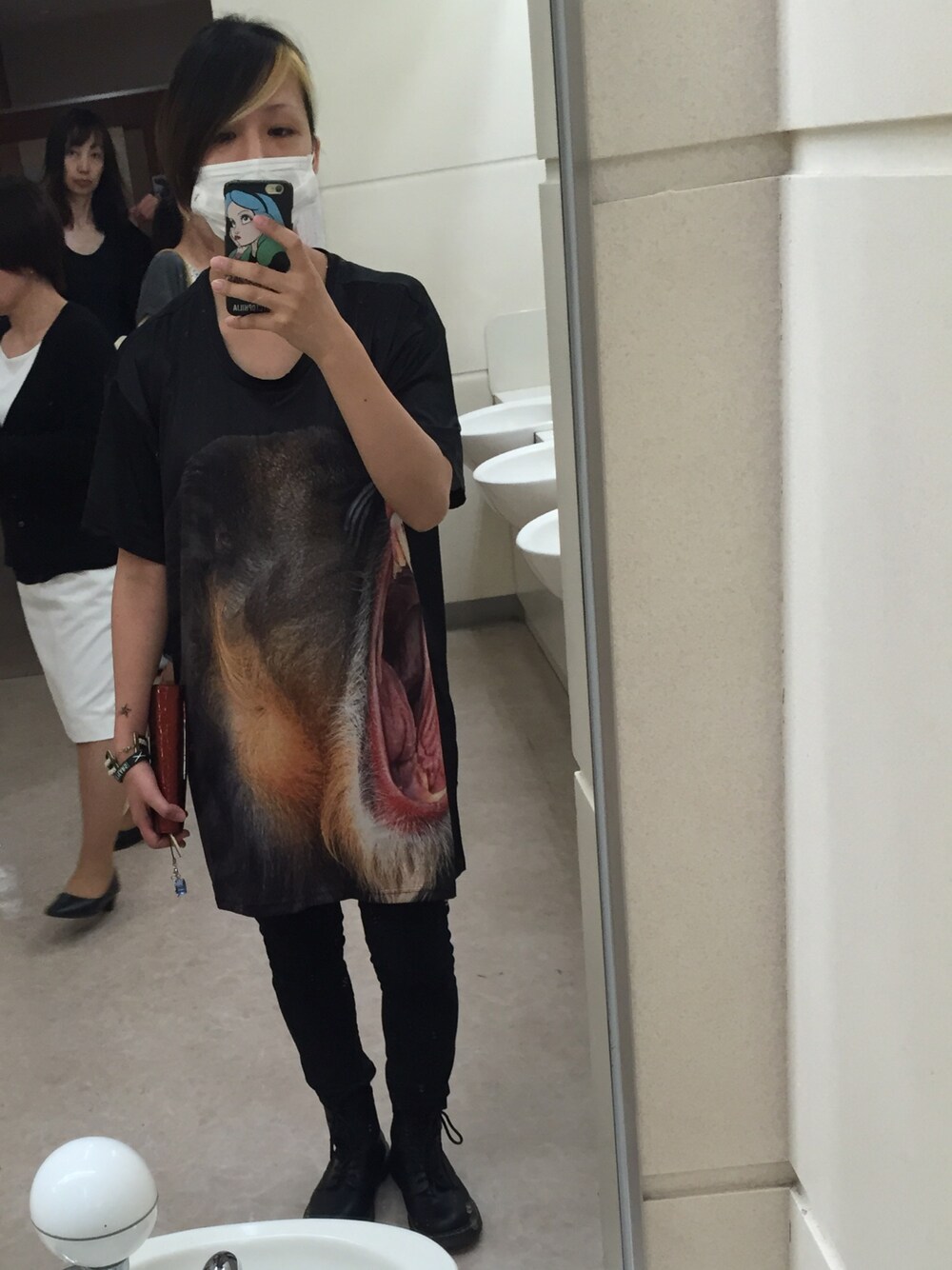Eeezの希英美のTシャツ/カットソー「総柄グラフィック ビッグシルエットカットソー ビッグシルエットドロップショルダーTシャツ PE-32 マントヒヒグラフィック ビッグTシャツ」を使ったコーディネート