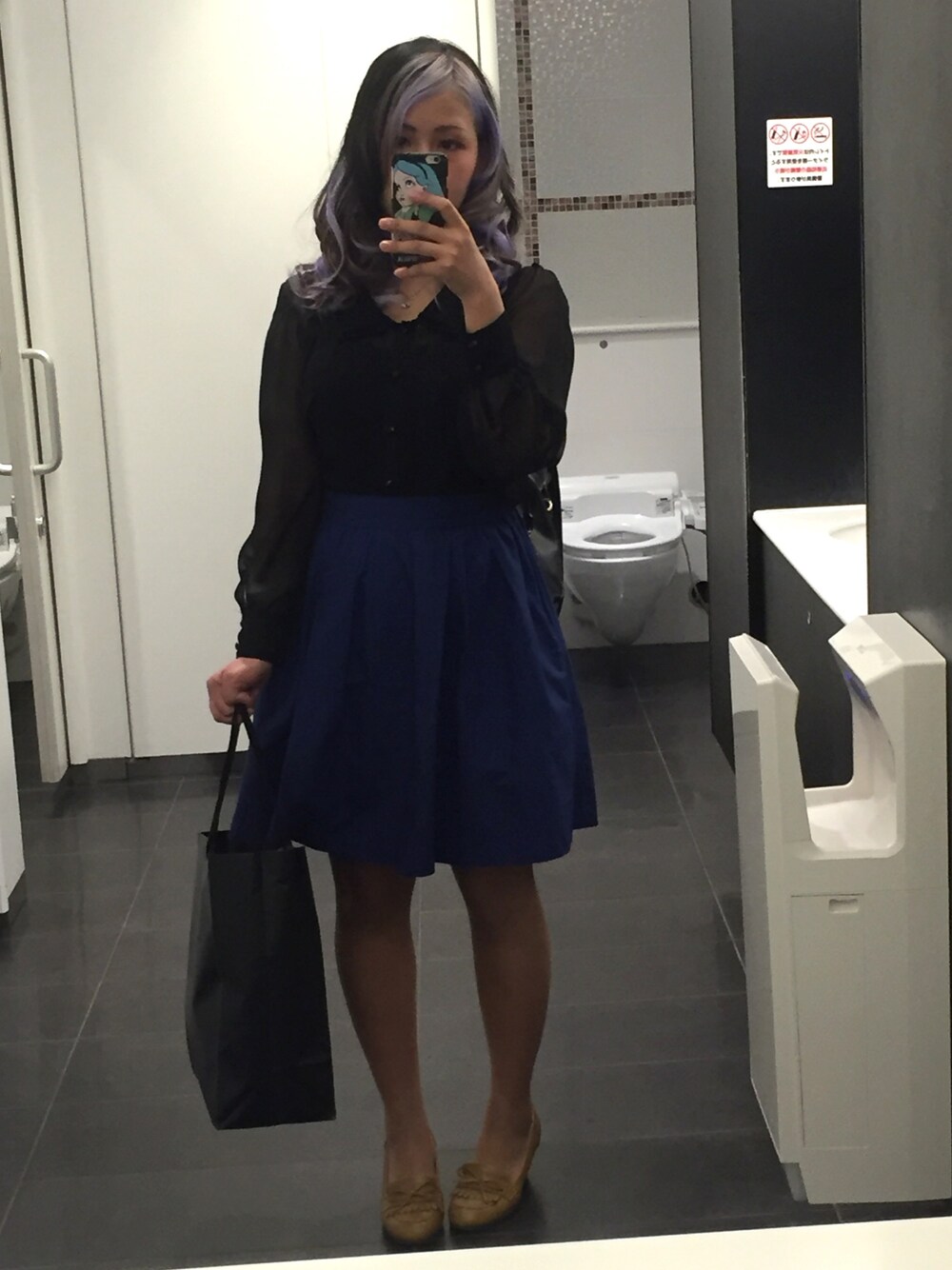 ブルー系のスカートを着用したレディースの夏コーディネートの1枚目の写真