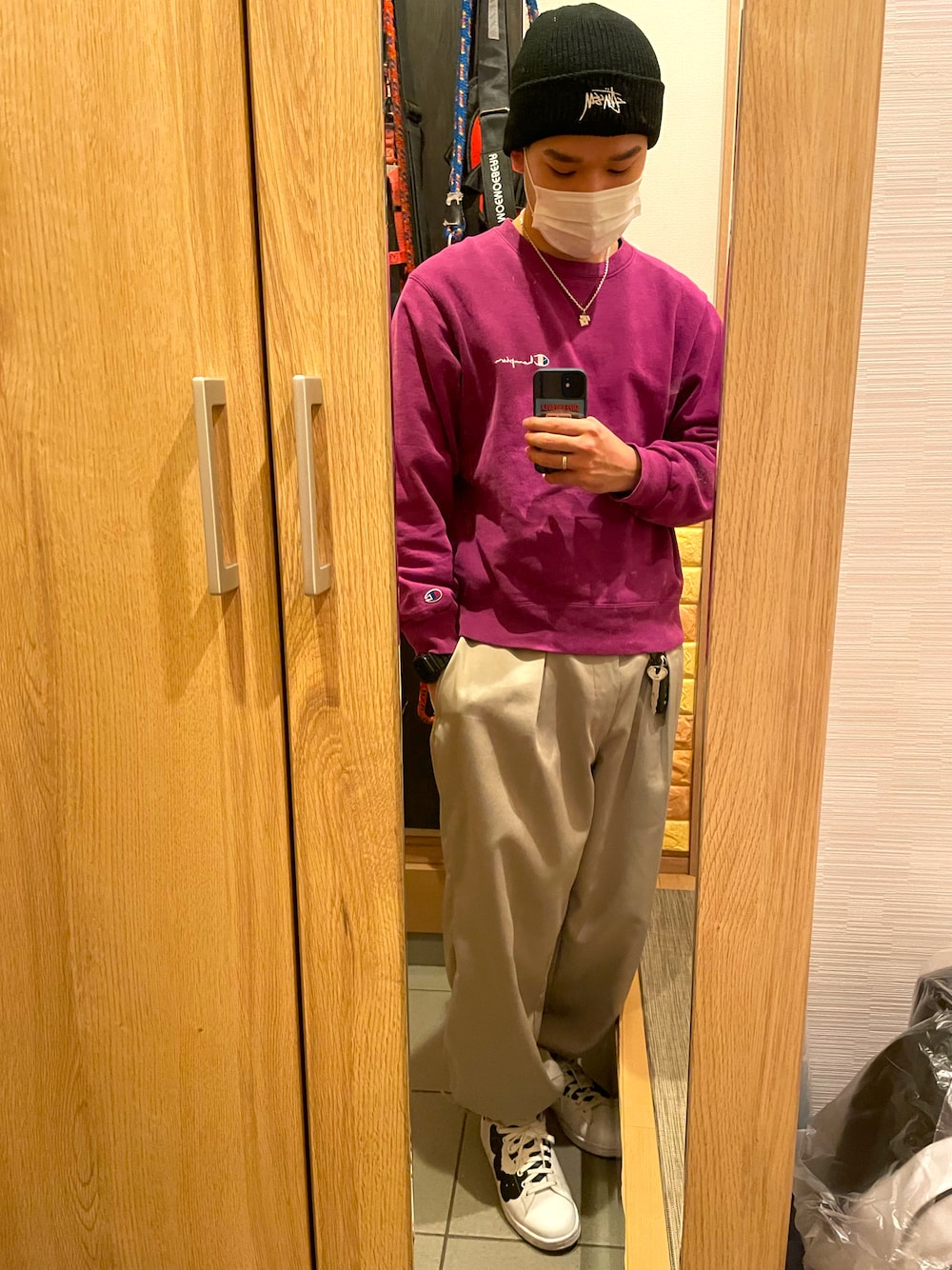 最近買ったSTUSSYのニット帽めっちゃいい!Championのスウェット、寅壱とも相性抜群🐵それと久々marimekko×Stan Smithやっぱデザインが秀逸で好き🌼