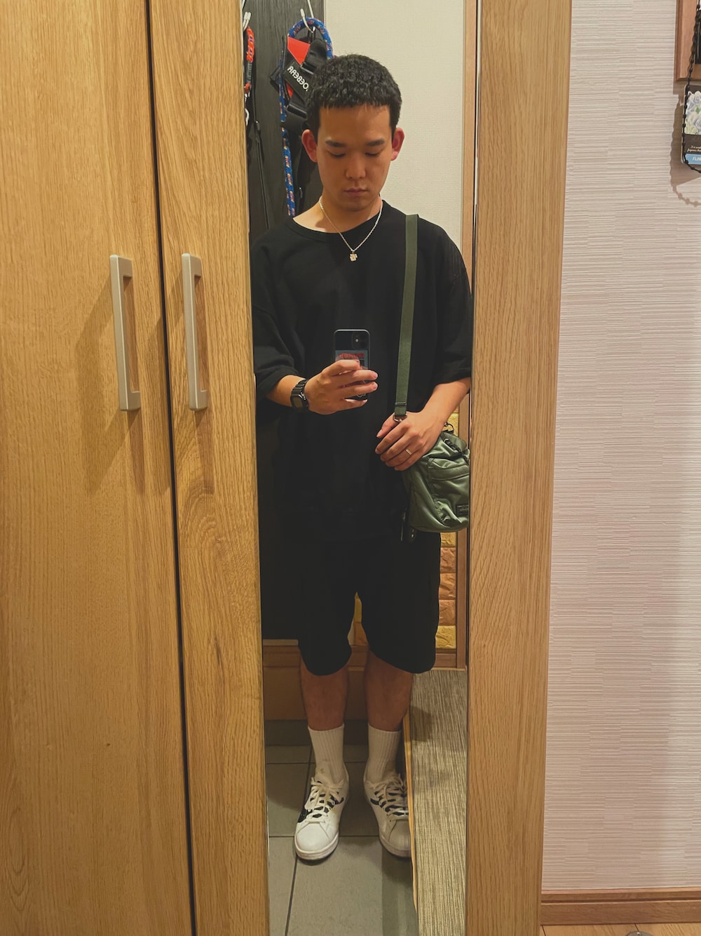 モノトーンコーデ⚫️⚪️ 差し色でPORTER🟢