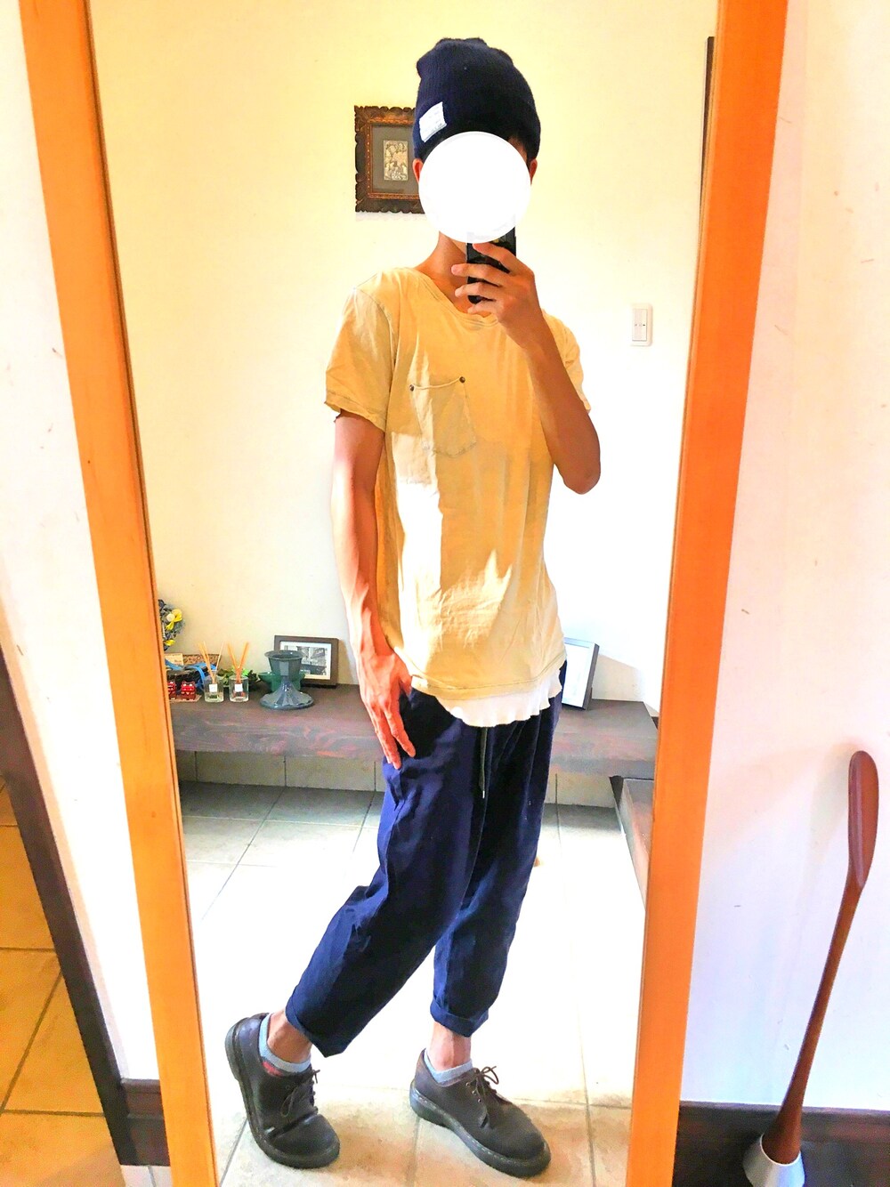 着用コーデ:6件今回も古着MIXスタイルです😊 京都の古着屋で買ったTシャツを中心にコーディネートしました👍 本格的な夏の天気になってきたので、ネイビーを使って、夏らしく仕上げました^_^ 履いているマーチンも古着屋で買ったものです! 最近ではあまり見ないブラウンかと🤔 いいね、フォローよろしくお願いします🙆