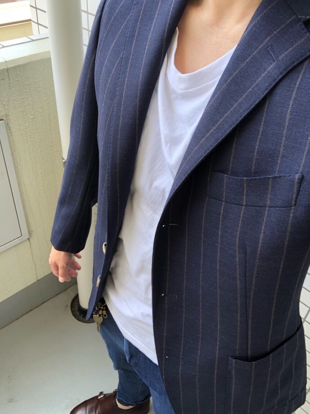 季節感無視 外出歩いてる時はTシャツ一枚でも 冷房効いてる所だとジャケット必須ですね